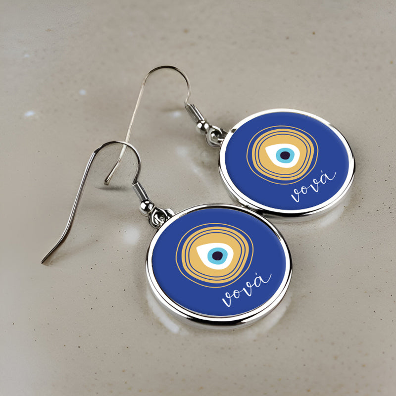 Μεταλλικά σκουλαρίκια στρογγυλά σε ασημί χρώμα με Ματάκι , για να χαρίσεις στην αγαπημένη σου νονά!