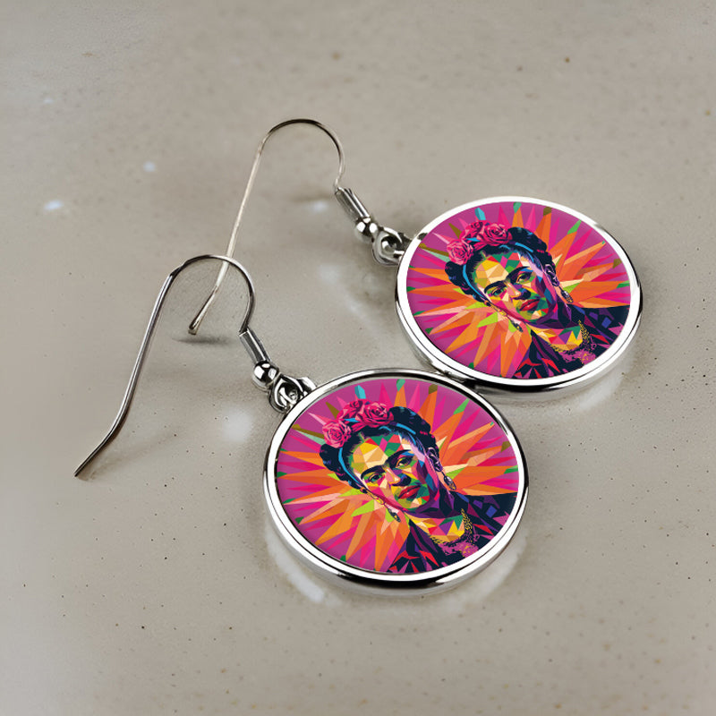 Μεταλλικά σκουλαρίκια στρογγυλά σε ασημί χρώμα Frida Kahlo Artistic, για να χαρίσεις ως δώρο ή να φορέσεις δημιουργώντας μια ξεχωριστή εμφάνιση!