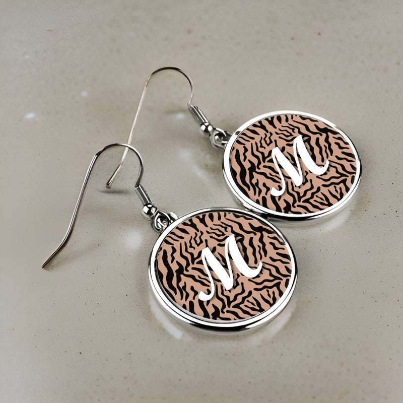 Μεταλλικά σκουλαρίκια στρογγυλά σε ασημί χρώμα Μονόγραμμα τιγρέ, για να χαρίσεις ως δώρο ή να φορέσεις δημιουργώντας μια ξεχωριστή εμφάνιση!