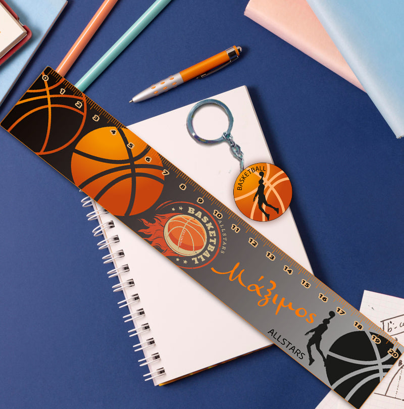 Προσωποποιημένος χάρακας Μπάσκετ με το όνομα και ασορτί μπρελόκ! To πιο τέλειο αξεσουάρ για το σχολείο ή το φροντιστήριο!