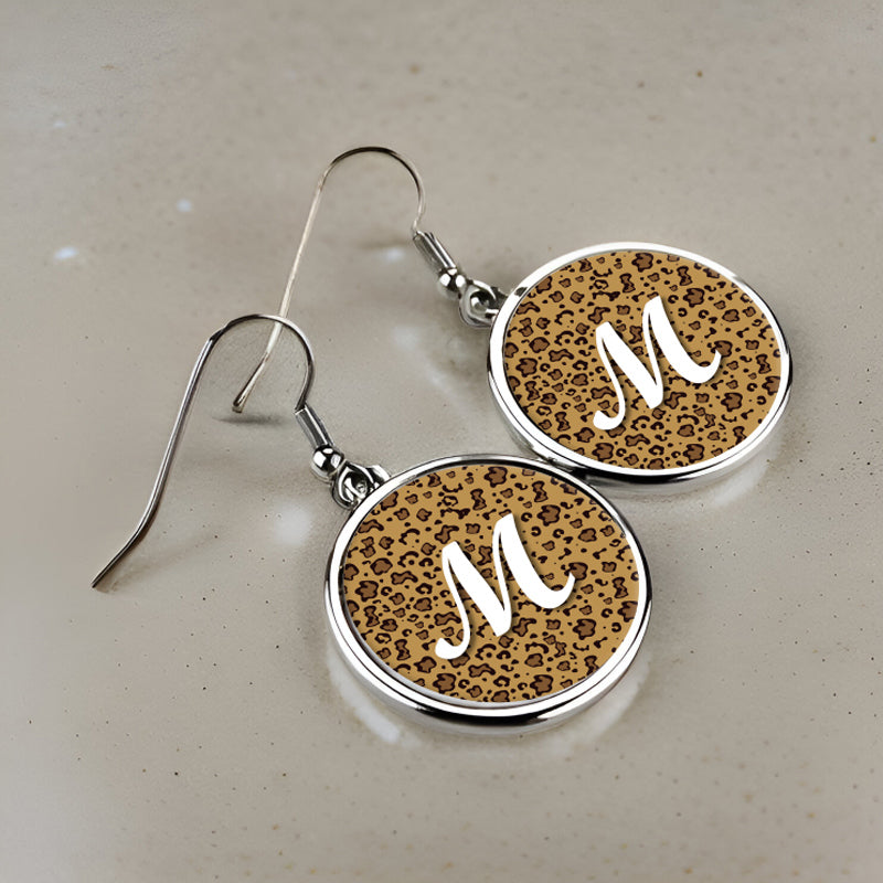 Μεταλλικά σκουλαρίκια στρογγυλά σε ασημί χρώμα Μονόγραμμα λεοπάρ, για να χαρίσεις ως δώρο ή να φορέσεις δημιουργώντας μια ξεχωριστή εμφάνιση!