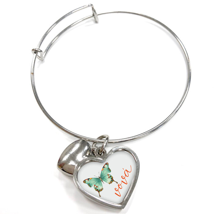 Μεταλλικό, εκτυπώσιμο βραχιόλι σε ασημί χρώμα με σχέδιο Πεταλούδα, για να χαρίσεις στη νονά σου!