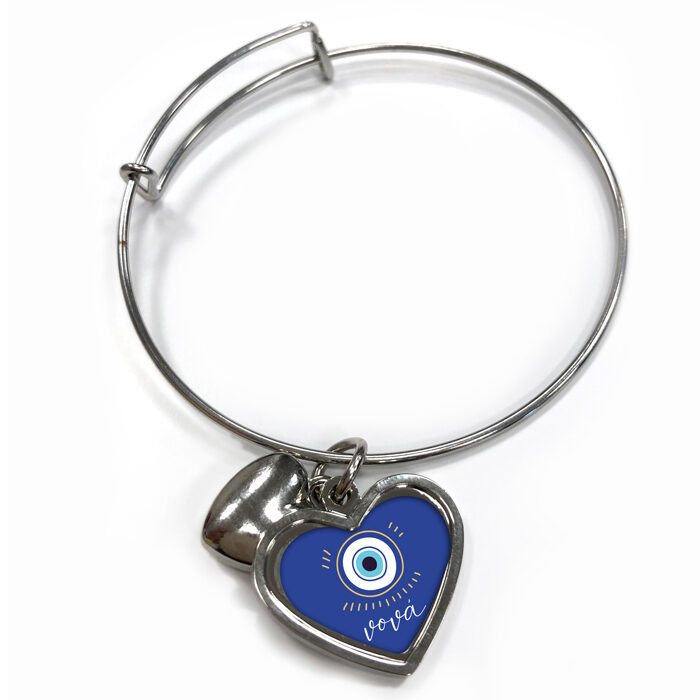 Μεταλλικό, εκτυπώσιμο βραχιόλι σε ασημί χρώμα με σχέδιο Ματάκι, για να χαρίσεις στη νονά σου!
