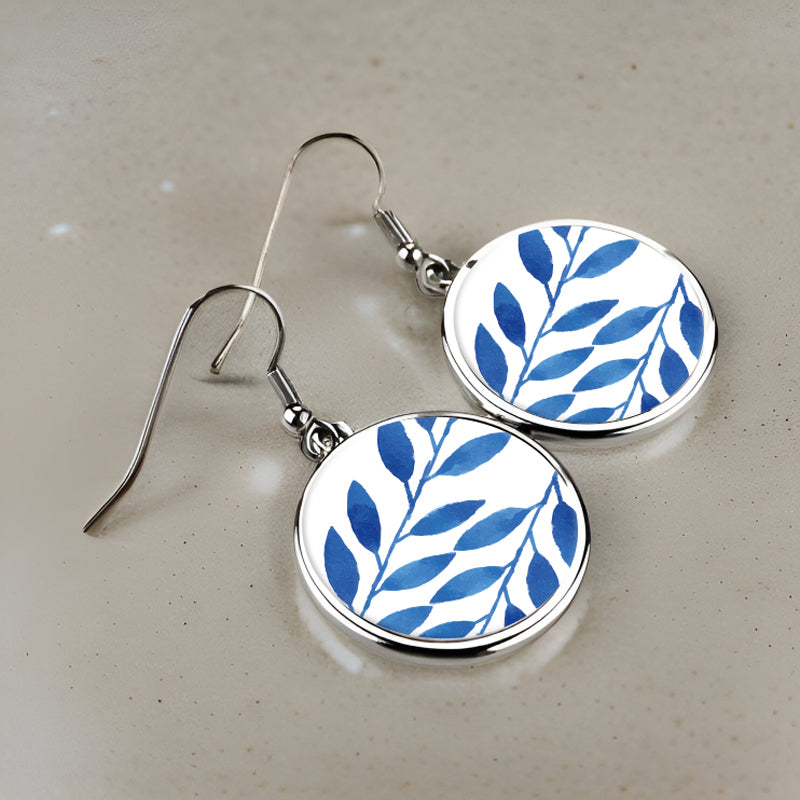 Μεταλλικά σκουλαρίκια στρογγυλά σε ασημί χρώμα μπλε Φύλλα, για να χαρίσεις ως δώρο ή να φορέσεις δημιουργώντας μια ξεχωριστή εμφάνιση!