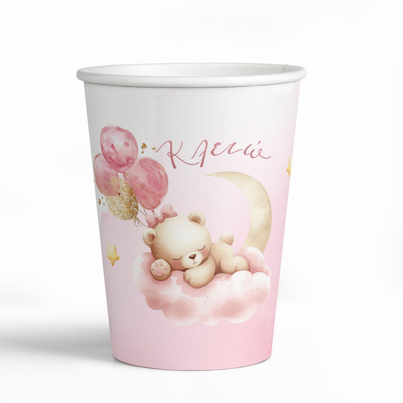 Ποτηράκια με το όνομα της επιλογής σας τυπωμένο επάνω και θέμα Αρκουδάκι, για να κεράσετε τους καλεσμένους σας στο τραπέζι!
