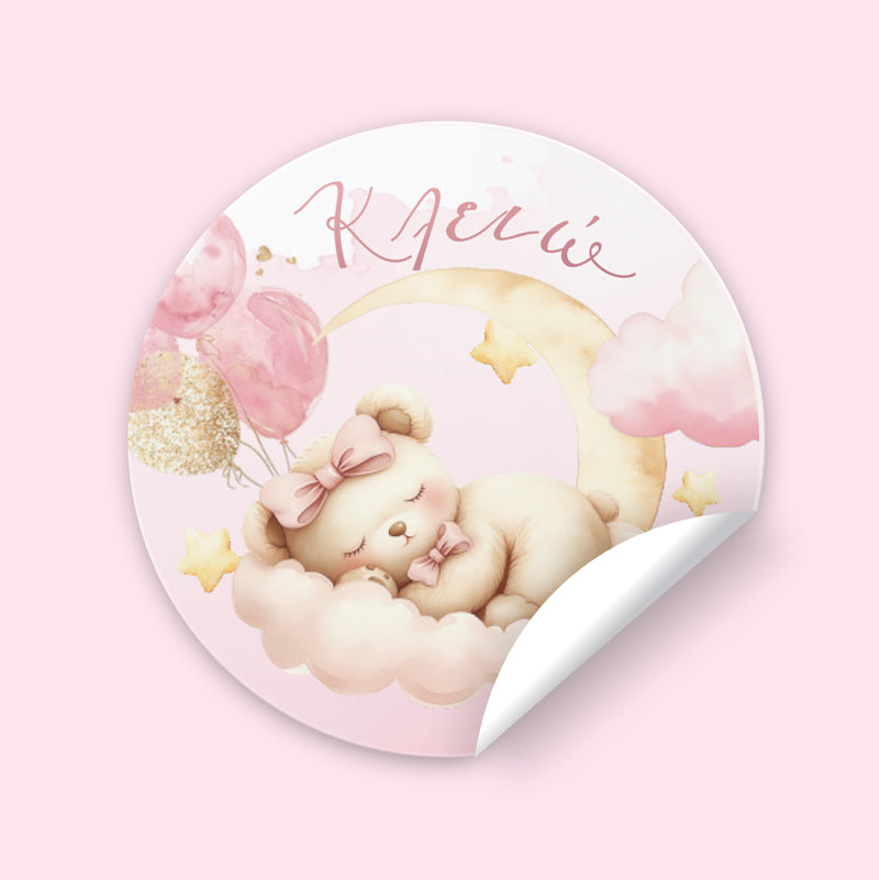 Στρογγυλά αυτοκόλλητα με σχέδιο Αρκουδάκι για να διακοσμήσεις τα αντικείμενα της Βάπτισης ή να τα δώσεις ως ενθύμιο δώρο στους μικρούς καλεσμένους!