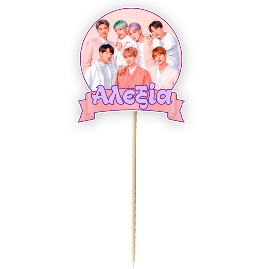 Διακοσμητικό Topper Τούρτας BTS για να στολίσετε την τούρτα, με το όνομα της επιλογής σας τυπωμένο επάνω και να εντυπωσιάσετε!