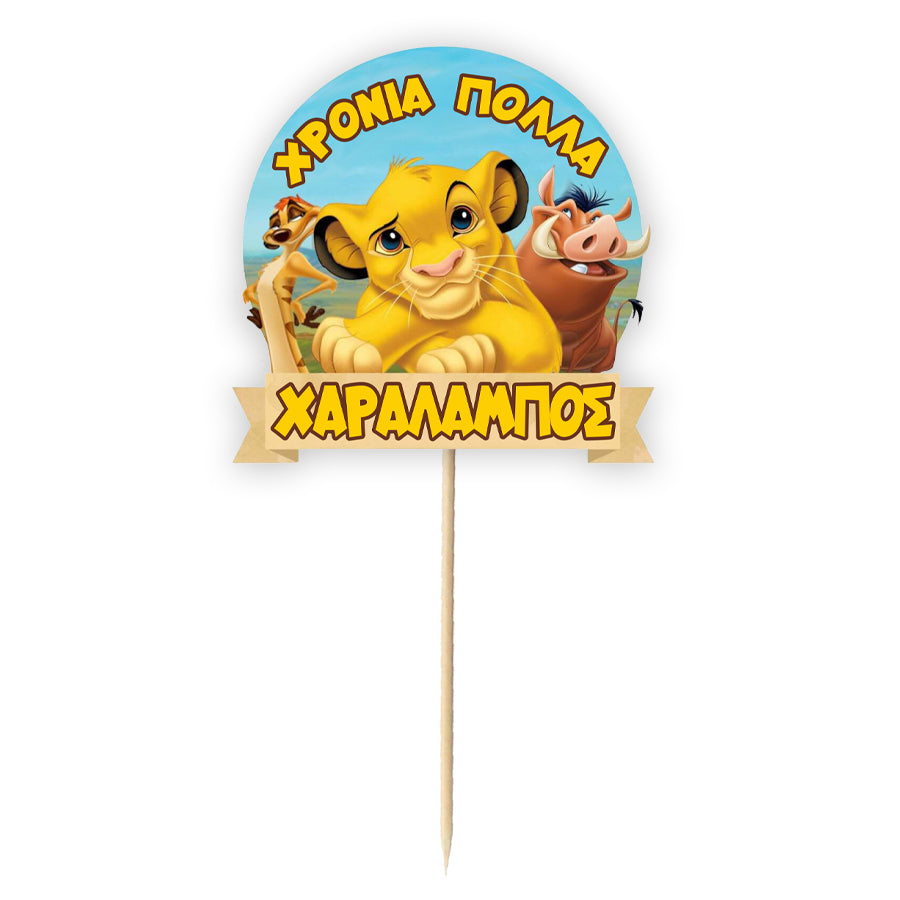 Διακοσμητικό Topper Τούρτας Lion King για να στολίσετε την τούρτα, με το όνομα της επιλογής σας τυπωμένο επάνω και να εντυπωσιάσετε!