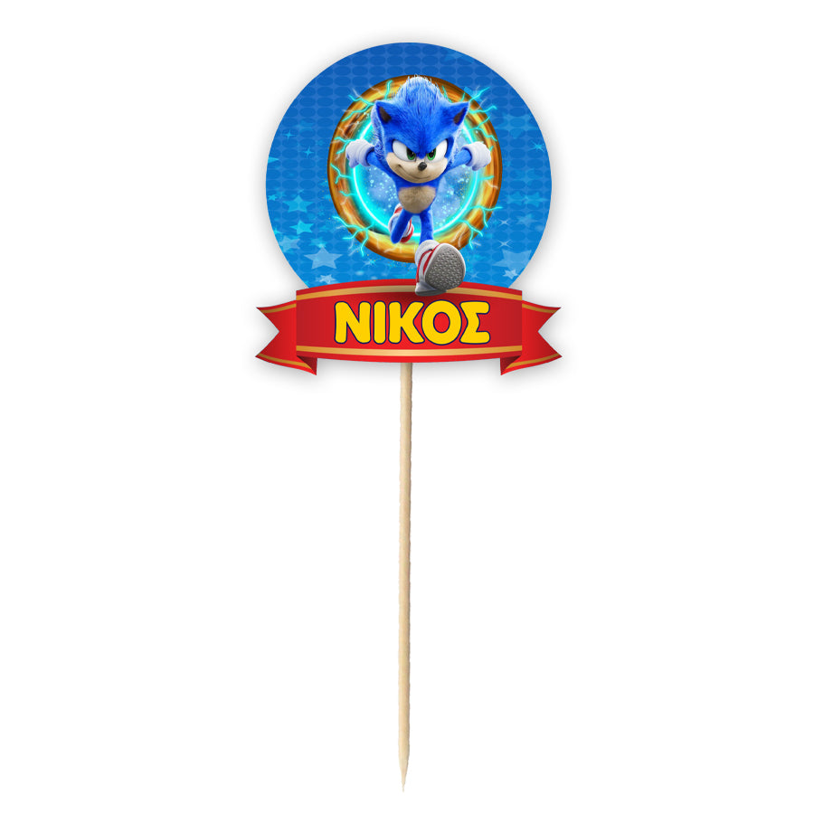 Διακοσμητικό Topper Τούρτας Sonic για να στολίσετε την τούρτα, με το όνομα της επιλογής σας τυπωμένο επάνω και να εντυπωσιάσετε!