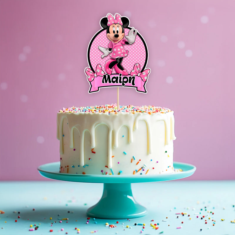 Διακοσμητικό Topper Τούρτας Minnie Mouse για να στολίσετε την τούρτα, με το όνομα της επιλογής σας τυπωμένο επάνω και να εντυπωσιάσετε!