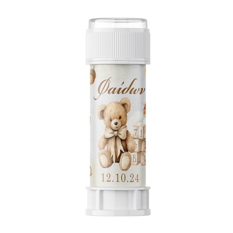 Προσωποποιημένες σαπουνόφουσκες με χάρτινο περιτύλιγμα Φθινοπωρινό Αρκουδάκι, για να χαρίσετε ως δωράκι στους μικρούς καλεσμένους ή να τις χρησιμοποιήσετε για τις μπομπονιέρες της βάπτισης!