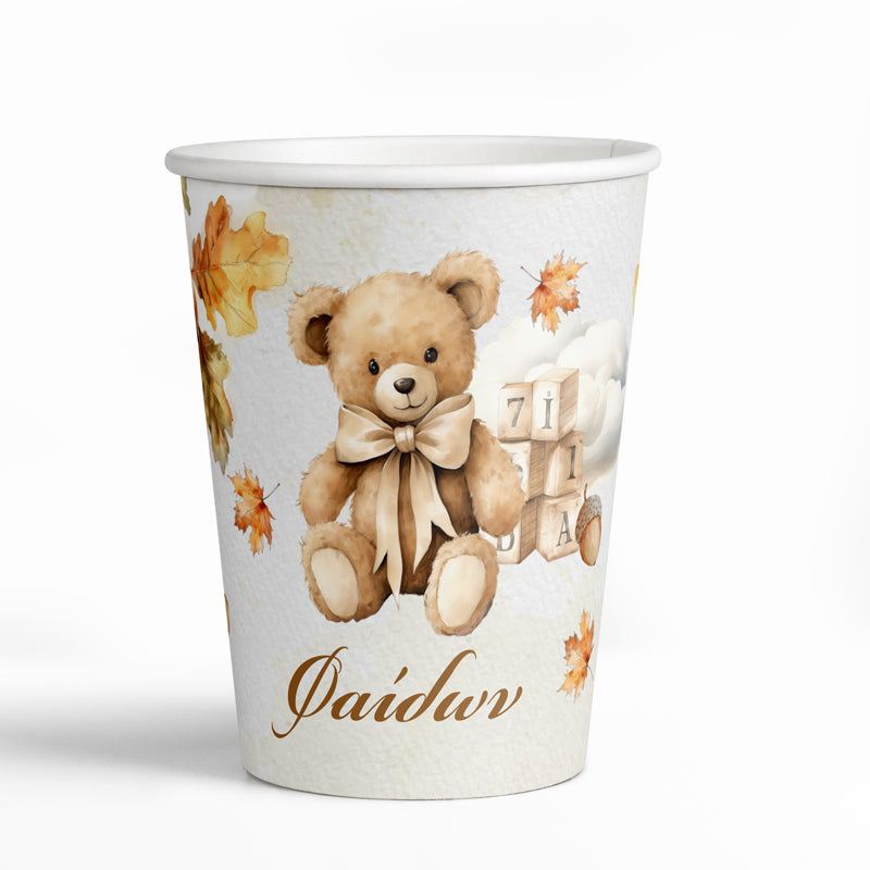 Ποτηράκια με το όνομα της επιλογής σας τυπωμένο επάνω και θέμα Φθινοπωρινή Βάπτιση Αρκουδάκι, για να κεράσετε τους καλεσμένους σας στο τραπέζι!