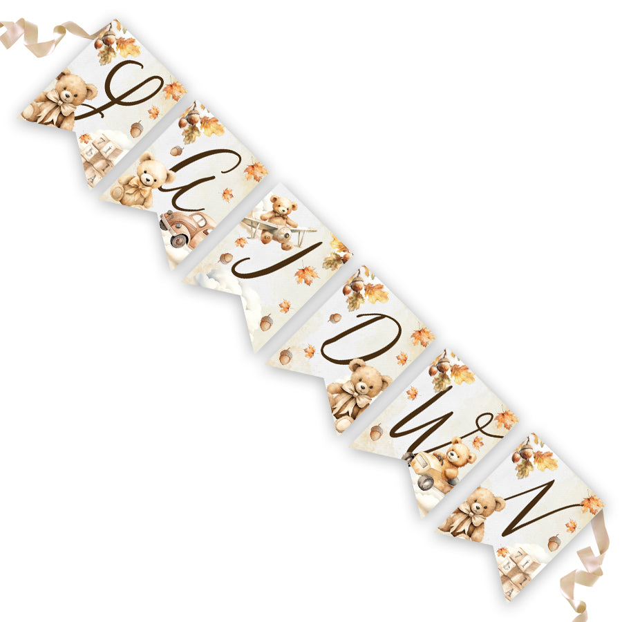Διακοσμητικά σημαιάκια με το όνομα του παιδιού και θέμα Φθινοπωρινή Αρκουδάκι!