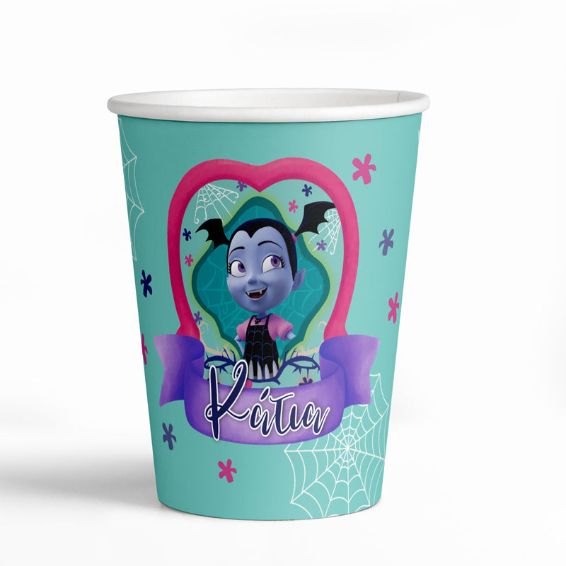 Ποτηράκια με θέμα Βαμπιρίνα και εκτυπωμένο το όνομα που επιθυμείτε, για να κεράσετε τους καλεσμένους σας στο τραπέζι του πάρτυ!