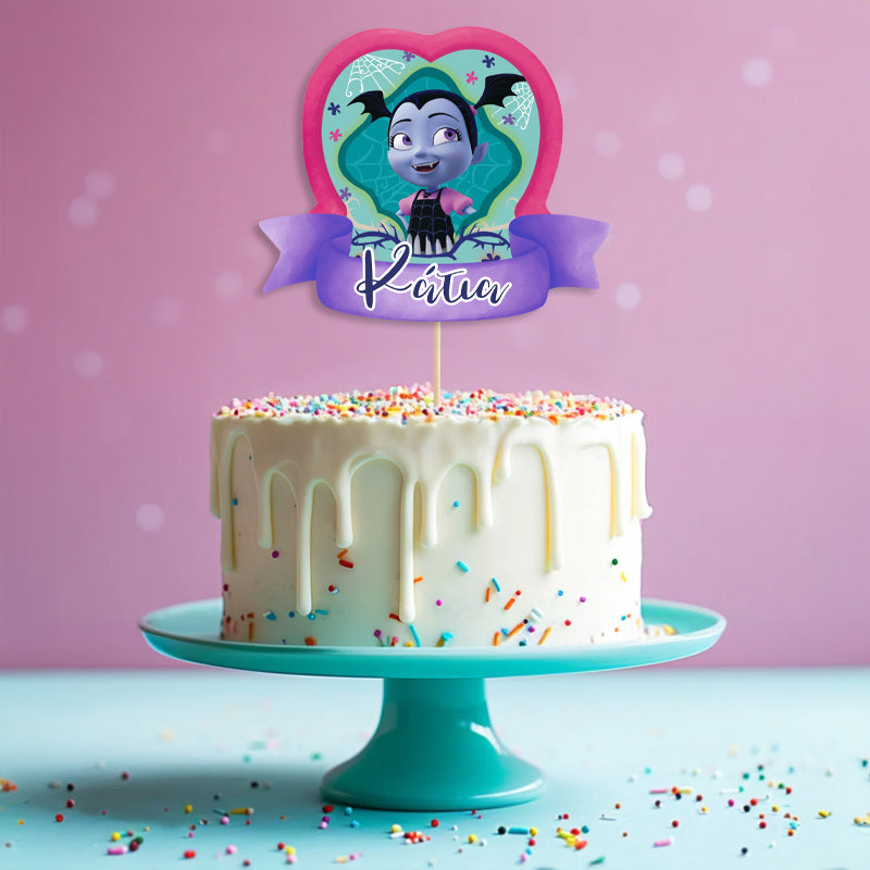 Διακοσμητικό Topper Τούρτας Βαμπιρίνα για να στολίσετε την τούρτα, με το όνομα της επιλογής σας τυπωμένο επάνω και να εντυπωσιάσετε!