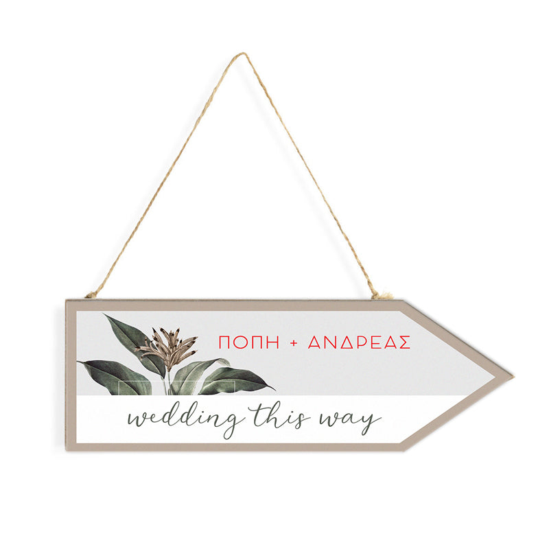 Πινακίδα σε σχήμα βέλους με τα ονόματα του ζευγαριού, για να υποδεχθείτε τους καλεσμένους στο γάμο σας!