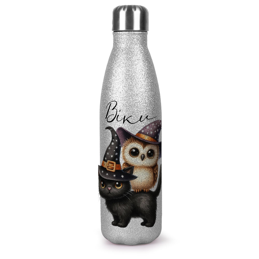 Προσωποποιημένο παγούρι – θερμός με Halloween θέμα Spooky ζωάκια και ασημί γκλίτερ spark!