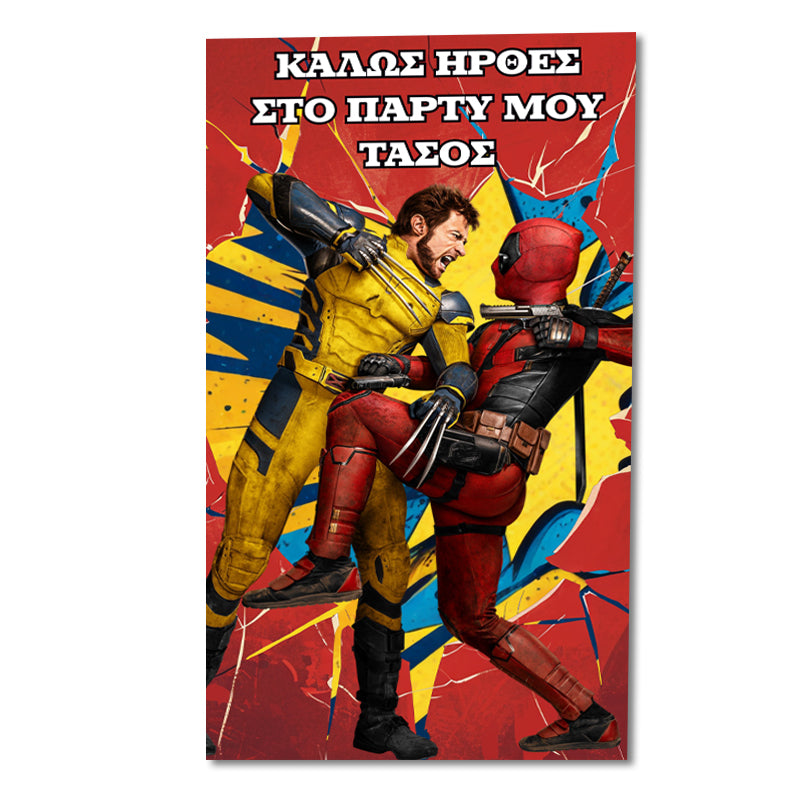Μεγάλη διακοσμητική αφίσα με θέμα Deadpool & Wolverine, για να υποδεχθείτε τους καλεσμένους σας στο πάρτυ γενεθλίων ή για να διακοσμήσετε το δωμάτιο!