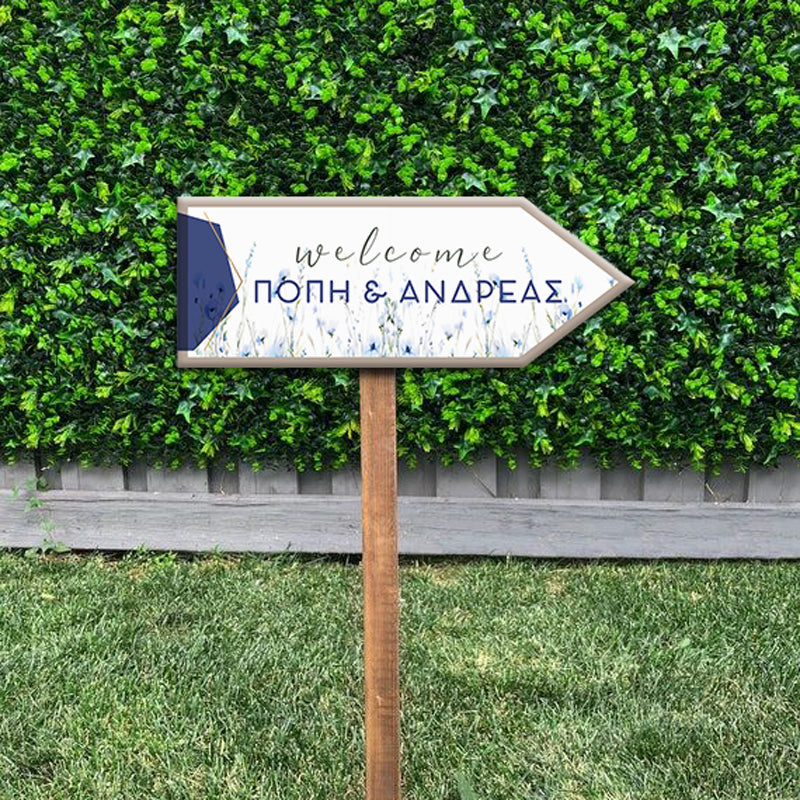 Πινακίδα σε σχήμα βέλους με τα ονόματα του ζευγαριού, για να υποδεχθείτε τους καλεσμένους στο γάμο σας!