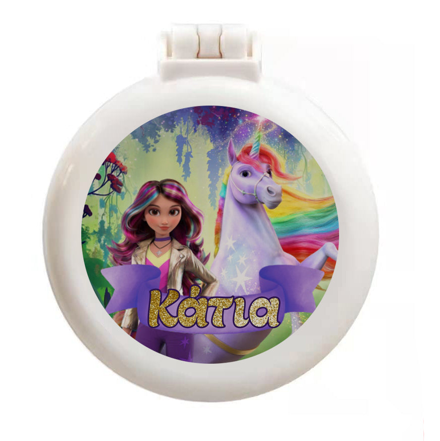 Προσωποποιημένο καθρεφτάκι με χτενάκι και θέμα Unicorn Academy. Το απόλυτο δωράκι για να χαρίσεις στην κάθε καλεσμένη του πάρτυ, με το όνομα της!
