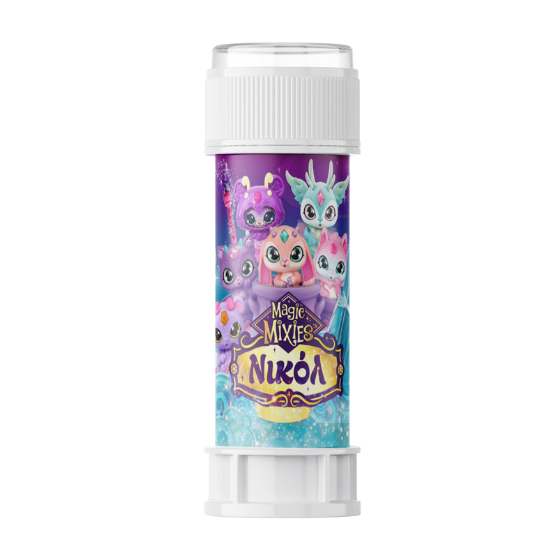 Προσωποποιημένες σαπουνόφουσκες με χάρτινο περιτύλιγμα και θέμα Magic Mixies, για να χαρίσετε ως αναμνηστικό δωράκι στους μικρούς καλεσμένους του πάρτυ.
