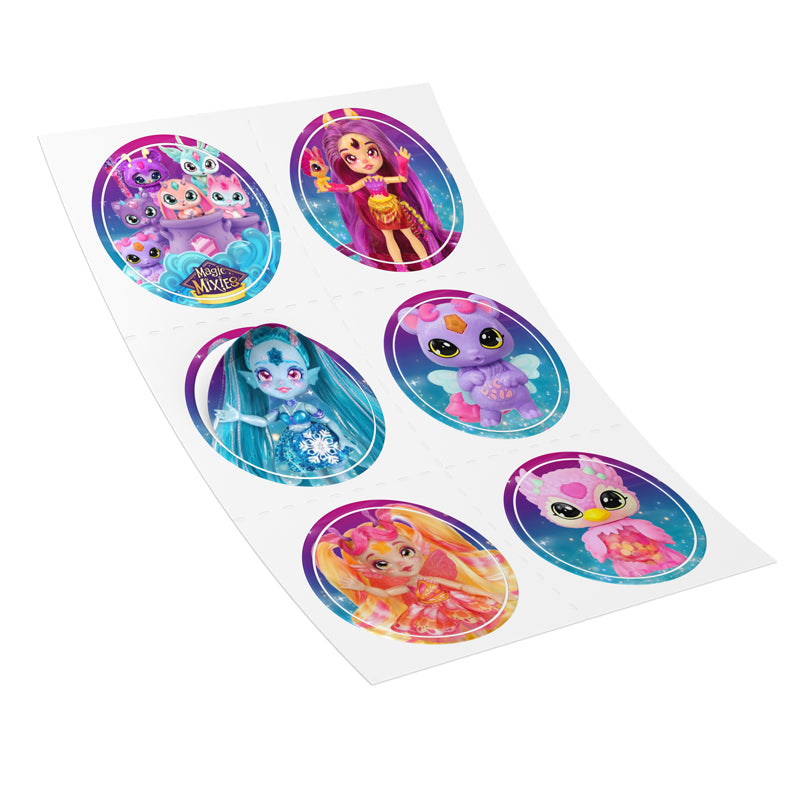 Στρογγυλά αυτοκόλλητα με σχέδιο Magic Mixies, για να διακοσμήσεις τα αντικείμενα του πάρτυ ή να τα δώσεις ως ενθύμιο δώρο στους μικρούς καλεσμένους!