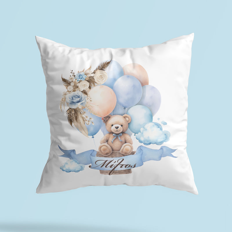 Μαξιλάρι με σχέδιο Αρκουδάκι Boho για να το έχεις ως διακοσμητικό ή και να ακουμπάς το μωράκι σου στη βάπτιση ή στο σπίτι!