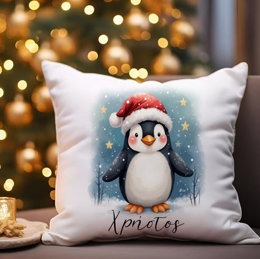 Μαξιλάρι Χριστουγεννιάτικο - Πιγκουίνος με Σκουφάκι