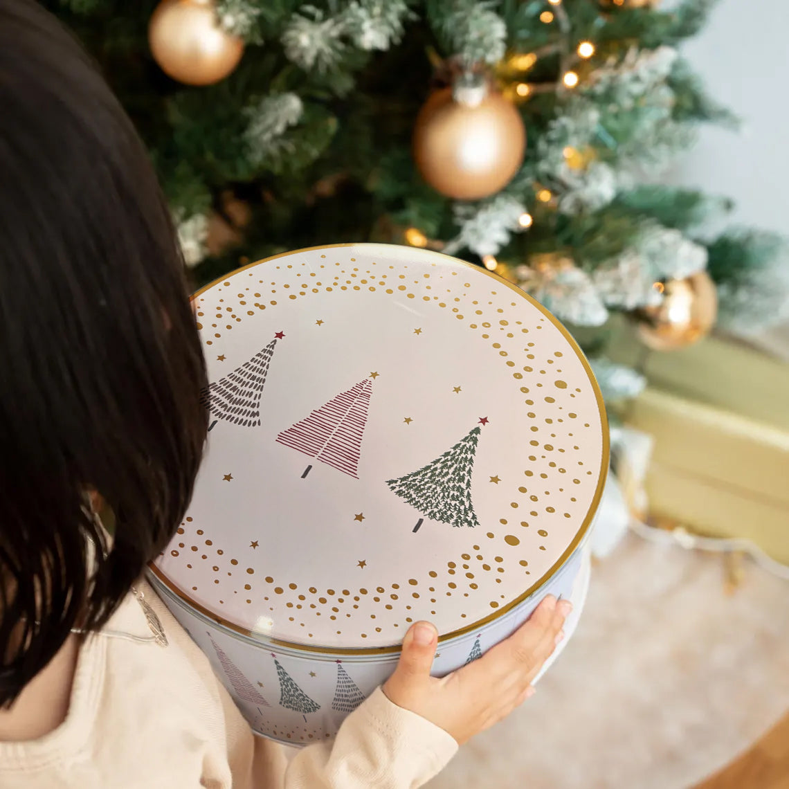 • 1 τσίγκινο κουτάκι Season's Greetings (διάμετρος: 22 cm). Το σχέδιο του κουτιού είναι χριστουγεννιάτικο, ποικίλλει και η επιλογή του γίνεται τυχαία