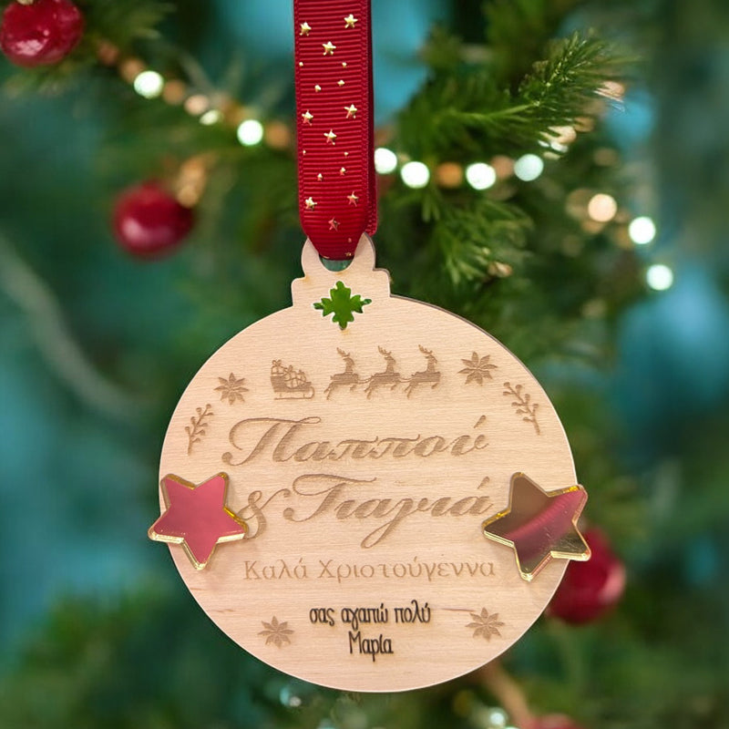 • 1 ξύλινο στολίδι με το όνομα της επιλογής σας
