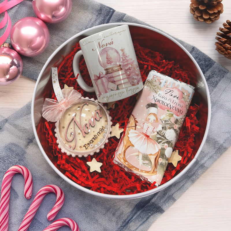 Μεγάλο χριστουγεννιάτικο κουτί με προσωποποιημένα δώρα για να χαρίσετε στους αγαπημένους σας αυτές τις γιορτές! Περιλαμβάνει: