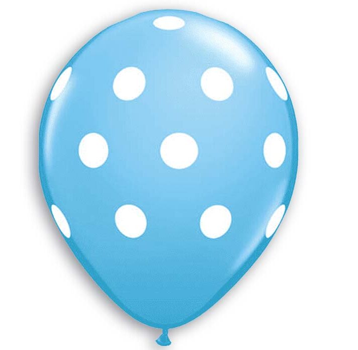 12" Μπαλόνι τυπωμένο γαλάζιο πουά. Δημιουργήστε μια ξεχωριστή διακόσμηση πάρτυ, βάπτισης ή για όποια άλλη περίσταση επιθυμείτε!