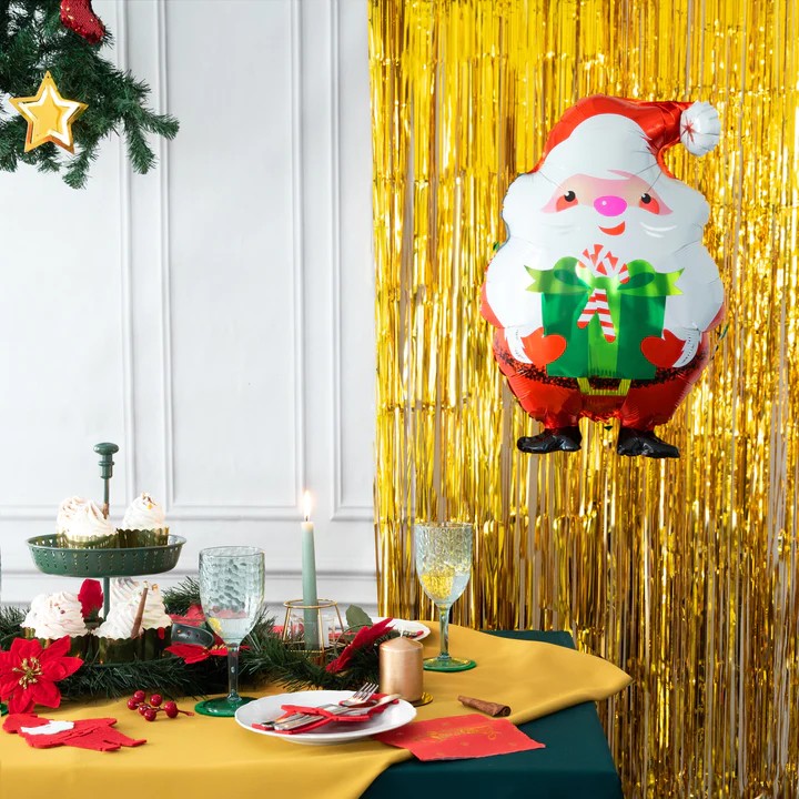 Φέρτε τη μαγεία των Χριστουγέννων στον χώρο σας με αυτό το μπαλόνι σε σχήμα Άγιου Βασίλη που κρατά ένα δώρο! Ιδανικό για διακόσμηση σε κάθε εκδήλωση, προσθέτει μια γιορτινή πινελιά που θα εντυπωσιάσει μικρούς και μεγάλους.