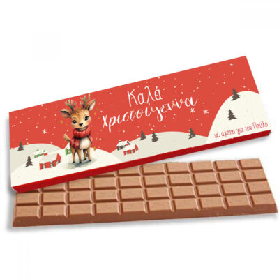 Γίγας σοκολάτα σε χάρτινη κασετίνα με σχέδιο ταρανδάκι, για να γλυκάνετε κάποιο αγαπημένο σας πρόσωπο την περίοδο των Χριστουγέννων!