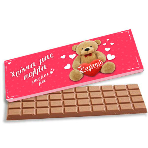 Γίγας σοκολάτα σε χάρτινη κασετίνα με σχέδιο Αρκουδάκι, για να γλυκάνεις το ταίρι σου και να δείξεις την αγάπη σου!
