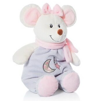 Μαλακό λούτρινο ποντικάκι με ροζ κασκόλ και φιογκάκι, για το νεογέννητο μωράκι. Ιδανικό για πολλές αγκαλιές!
