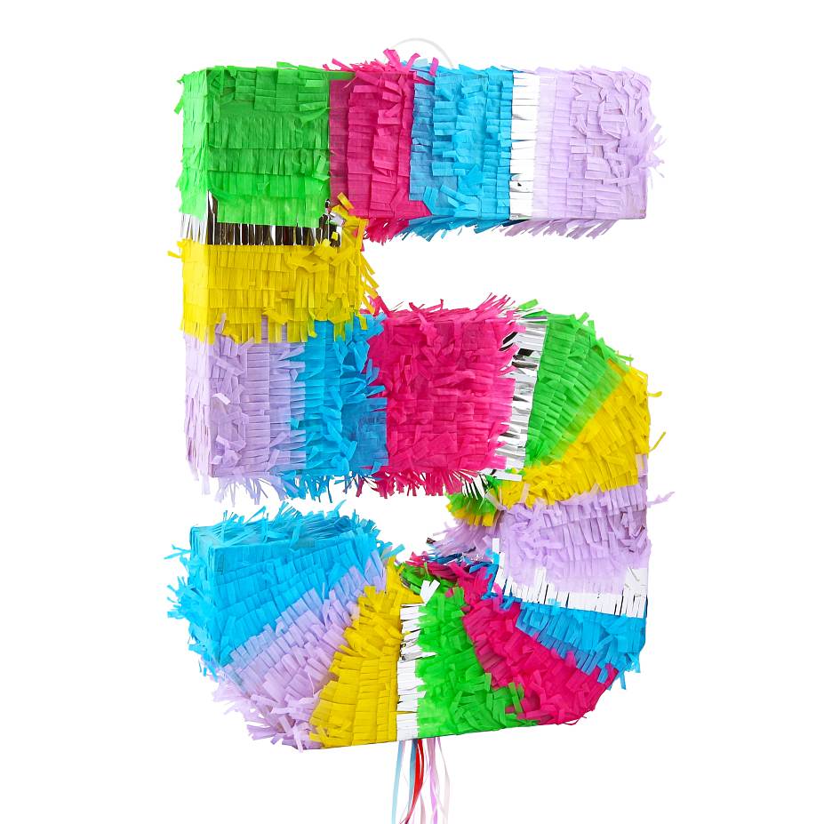 Πινιάτα για πάρτυ Αριθμός 5 σε όμορφα παστέλ χρώματα. Επιλέξτε το παιχνίδι της πινιάτας για να ξαφνιάσετε ευχάριστα τους μικρούς σας καλεσμένους!