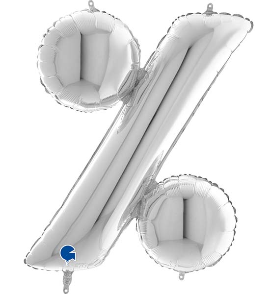 Μπαλόνι σύμβολο "%" Ασημί 100 εκ. για να στολίσετε την βιτρίνα σας και να εντυπωσιάσετε τους πελάτες!