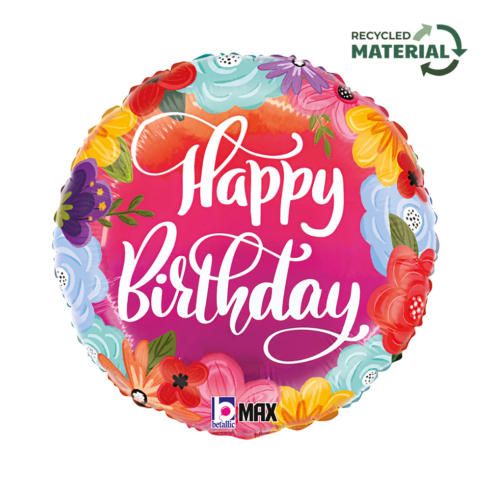 Μπαλόνι γενεθλίων με μήνυμα Happy Birthday και σχέδιο όμορφα Ανοιξιάτικα λουλούδια!