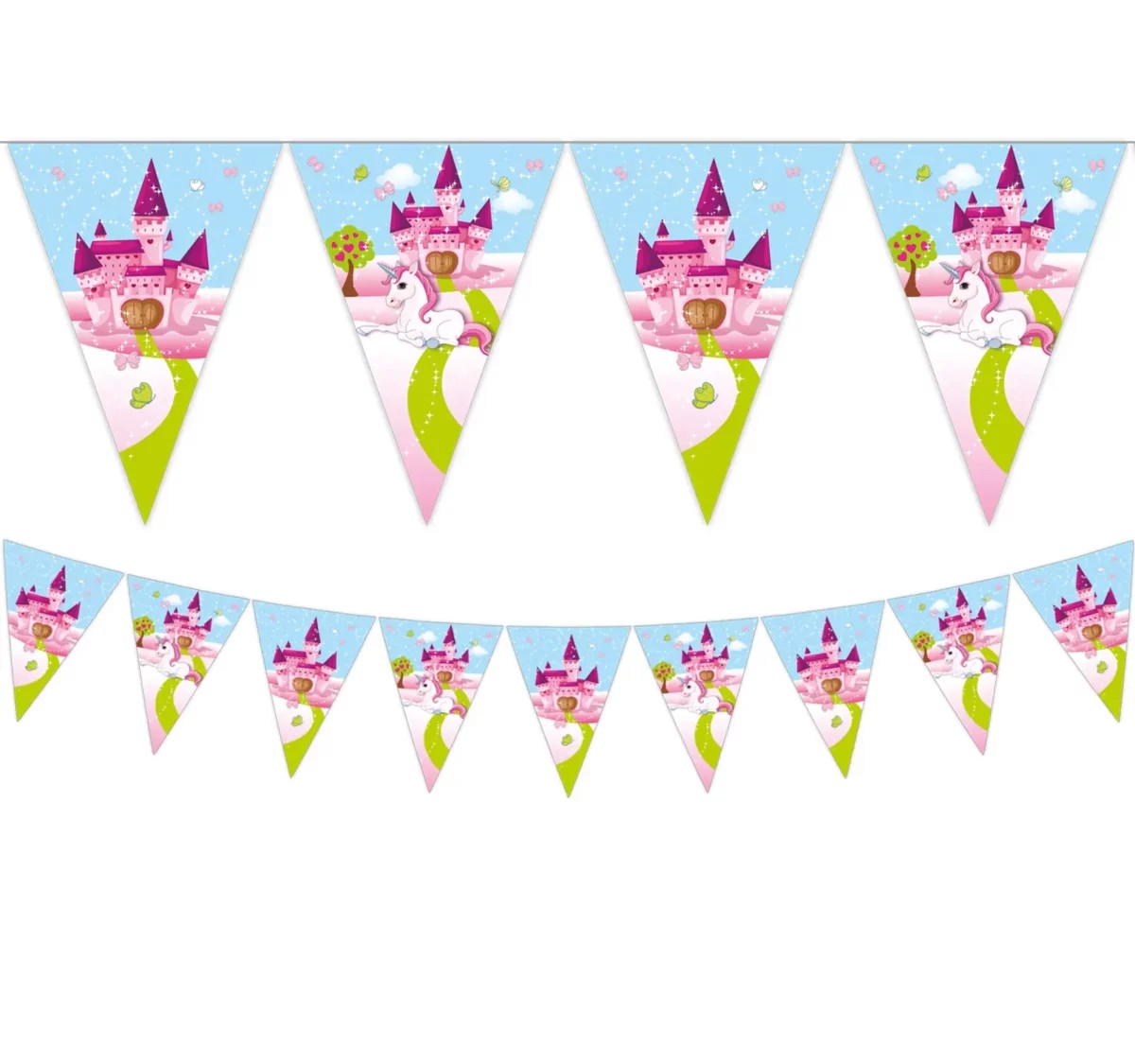 Διακοσμήστε το χώρο για το πάρτυ, με τριγωνικά σημαιάκια Μονόκερος & Κάστρο και δημιουργήστε μία γιορτινή ατμόσφαιρα!