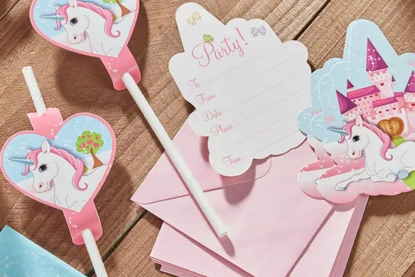 Προσκλήσεις με όμορφο Μονόκερο σε σχήμα Κάστρου, για να καλέσετε τους αγαπημένους σας φίλους στο πάρτυ γενεθλίων!