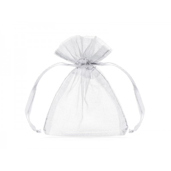 Οικονομικό λευκό πουγκί από οργάντζα, ιδανικό για μπομπονιέρες γάμου ή βάπτισης.
