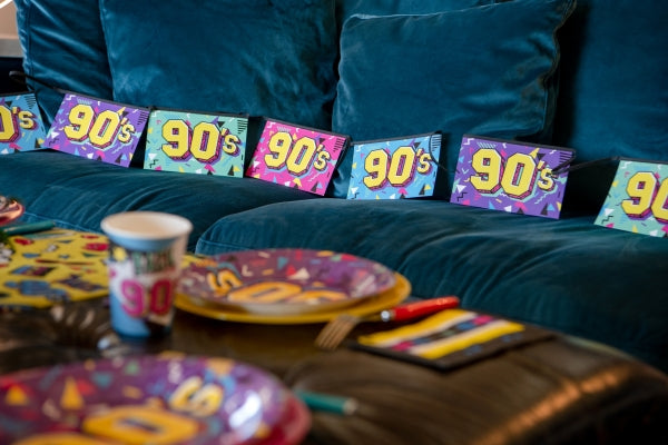 Διακοσμητική γιρλάντα με σημαιάκια Back to 90΄s, για να στολίσετε το χώρο ή το τραπέζι της θεματικής εκδήλωσης!