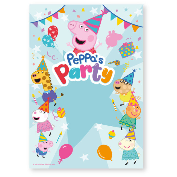 Backdrop σκηνικό για το πάρτι γενεθλίων με θέμα Πέππα το Γουρουνάκι. Τοποθετήστε το ως φόντο και βγάλτε μοναδικές φωτογραφίες. Μπορείτε να το χρησιμοποιήσετε παραπάνω από μία φορά.