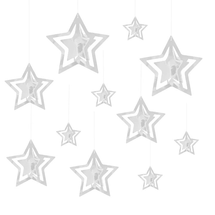 Σετ με διακοσμητικά με ασημί Αστέρια 3D, για να στολίσετε το χώρο σας σε οποιαδήποτε θεματική εκδήλωση και να δημιουργήσετε μοναδικά σκηνικά!