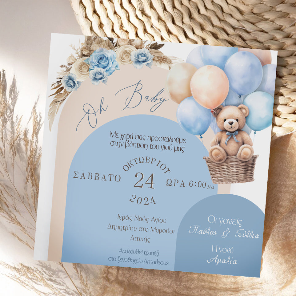 Προσκαλέστε τα αγαπημένα σας άτομα στην βάπτιση του μωρού σας με προσκλητήριο στο πιο γλυκό θέμα Αρκουδάκι!