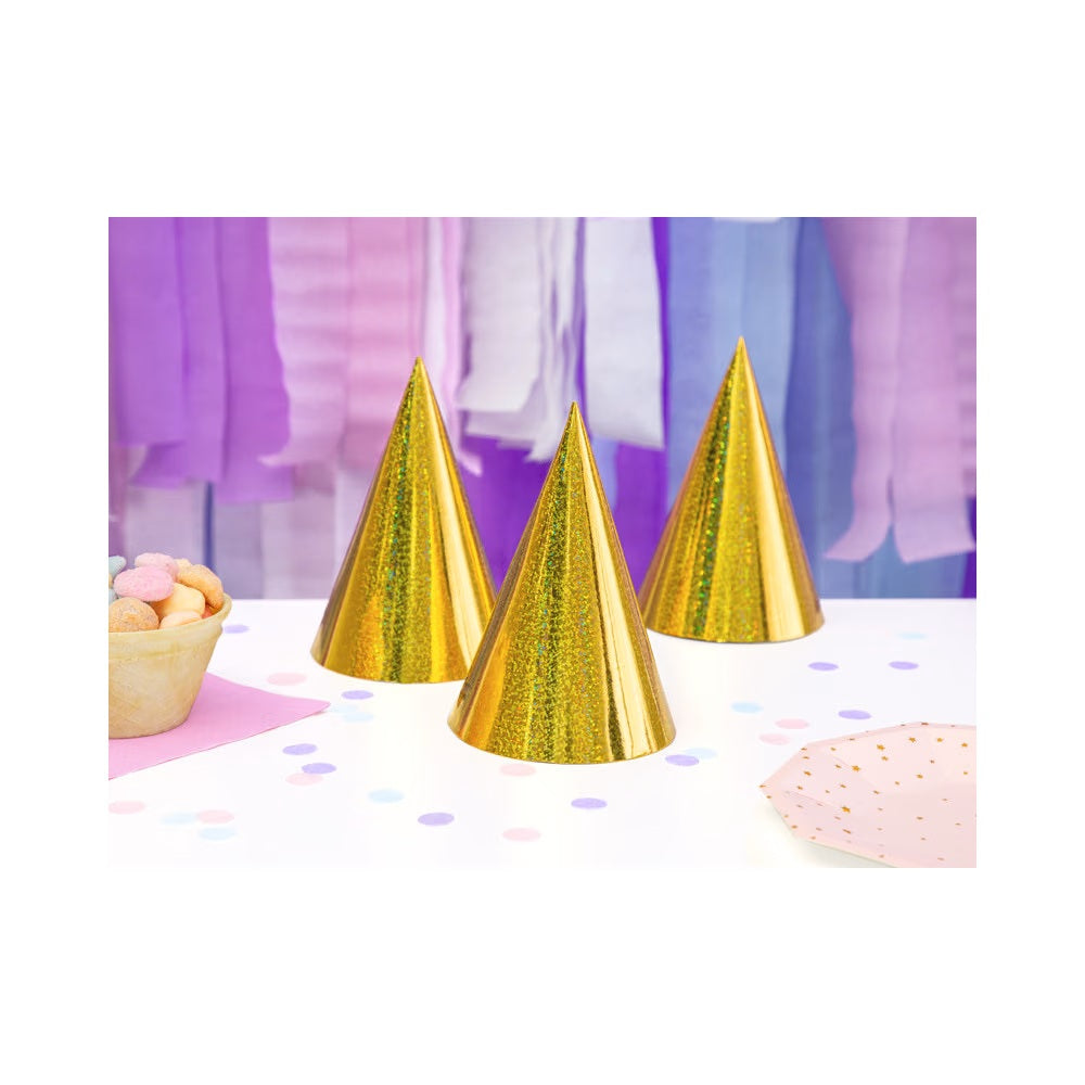 Καπελάκια πάρτυ κατασκευασμένα από χαρτί σε χρυσό μεταλλικό χρώμα.