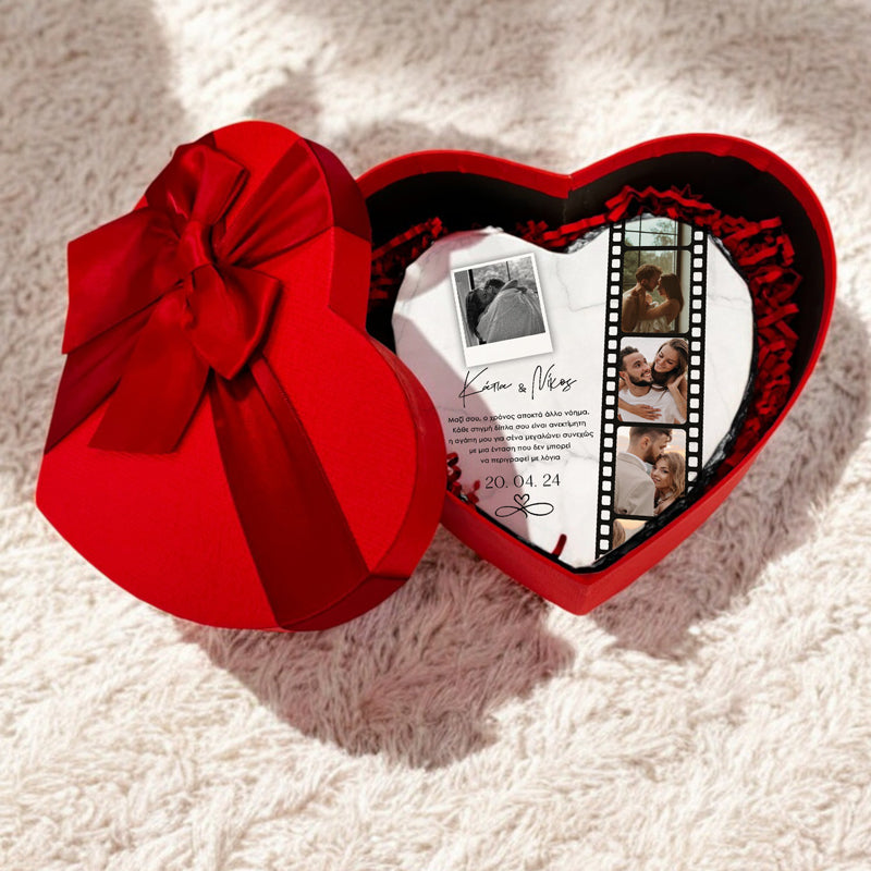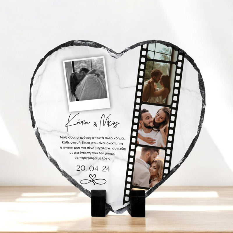 Εντυπωσιακή πέτρινη κορνίζα με αφιέρωση, ένα όμορφο δώρο για την επέτειο ή για τον Άγιο Βαλεντίνο, που το ταίρι σου θα θαυμάζει για πάντα! Σε αυτό το προϊόν φωτογραφίας, συνδυάζεται η σύγχρονη τεχνολογία εκτύπωσης σε ένα κομμάτι φυσικής πέτρας.