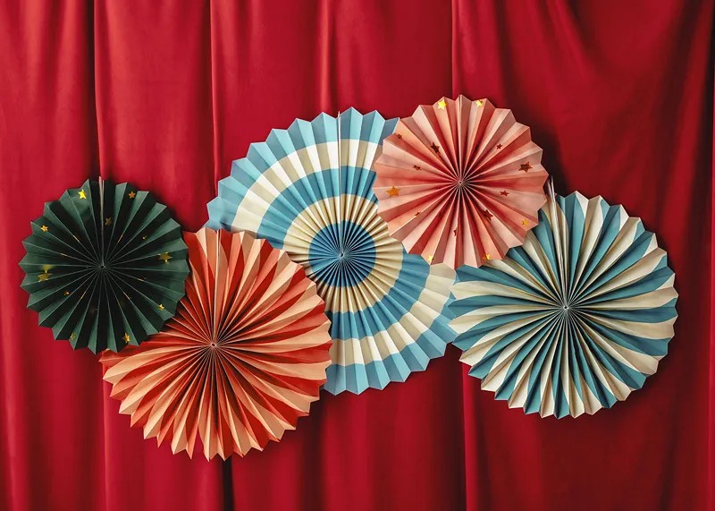 Σετ χάρτινες βεντάλιες Τσίρκου (5 τεμ). Δημιουργήστε μία όμορφη σύνθεση με μικρές και μεγάλες χάρτινες βεντάλιες για μία όμορφη και ιδιαίτερη διακόσμηση στο χώρο σας, για το πάρτυ, τη βάπτιση ή μία εκδήλωση!