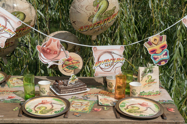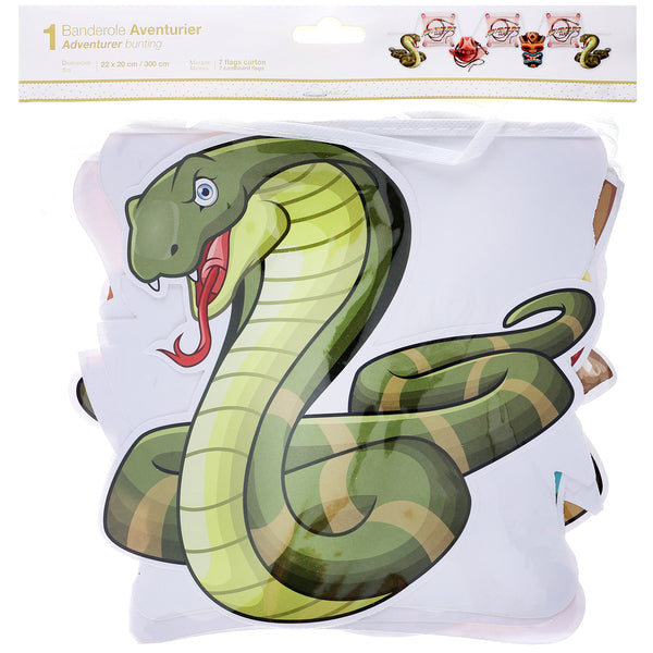 Εντυπωσιακά χάρτινα σημαιάκια με θέμα την περιπέτεια Adventure Party, για να στολίσεις τον χώρο του πάρτυ ή της βάπτισης με θέμα ζούγκλα!